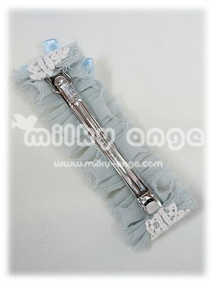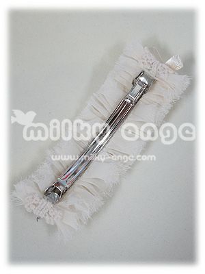 素材:バレッタ、オーガンジー、トーションレース、パール、ハート型チャーム、サテンリボン、ラインストーン