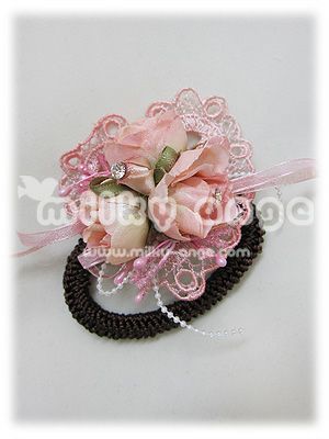 素材:ゴム、アートフラワー、くまプラッシュ、ラインストーン、ビーズ