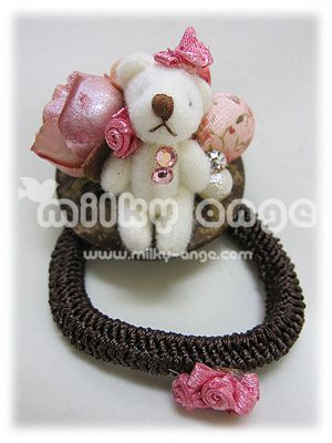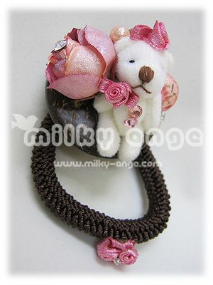 ゴム、アートフラワー、くまプラッシュ、ラインストーン、ビーズ