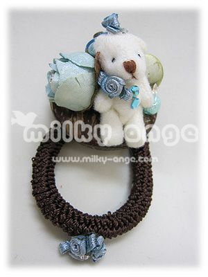 お花に囲まれたくまさんが可愛いヘアゴムです。