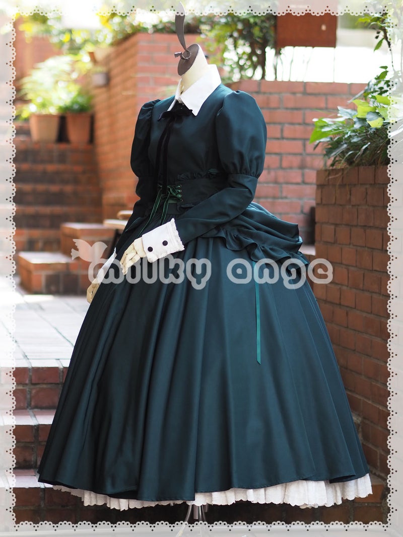 長袖ワンピース、バッスル、エプロン、胸リボン、付け襟、カフス