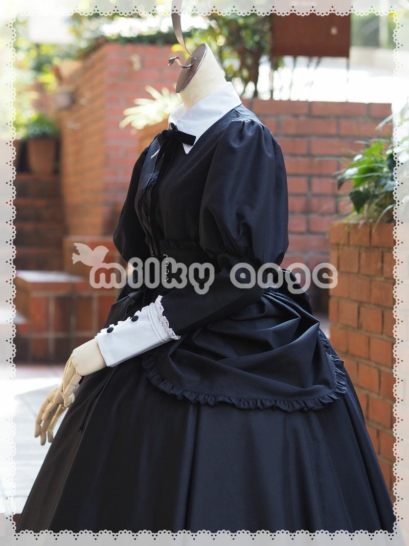 ヴィクトリアン王朝時代のメイド服をイメージした、クラシックなバッスル付きメイド服「リタ」。そこに、ソロメイドとして活躍されている“メイドのはんな”さんこだわりの「実用性」をプラスしました。
