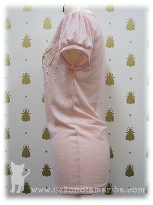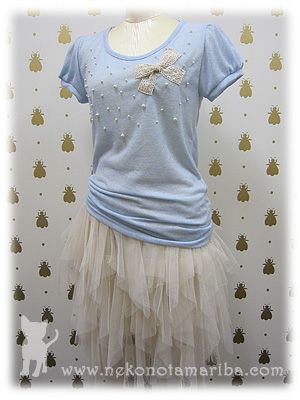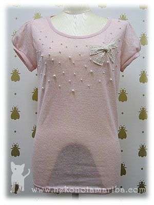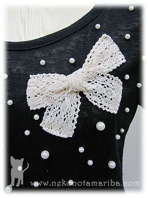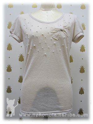 散りばめられたパールとリボンモチーフが上品なTシャツです。