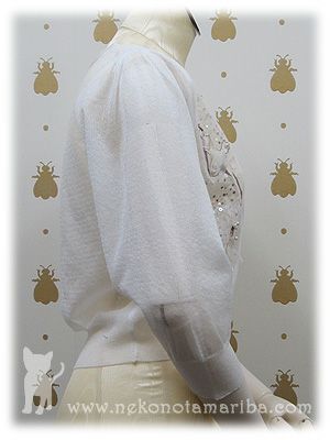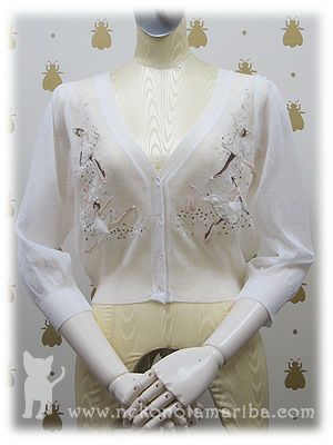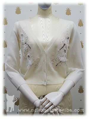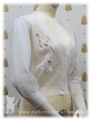 バレリーナの刺繍と、キラキラ光るスパンコールやパールが華やかなカーディガンです。