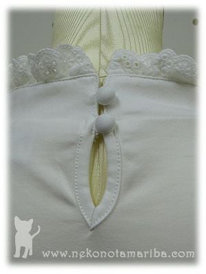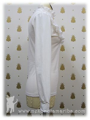 チュールレースとリボンで飾った丸いヨークが可愛いカットソーです。