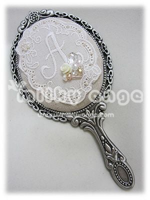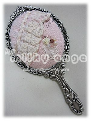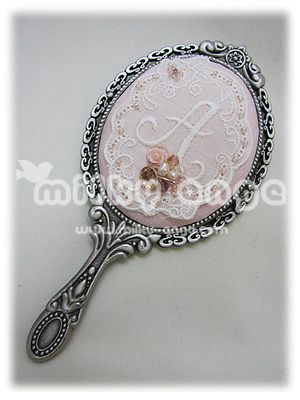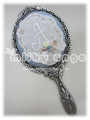 ハンドミラー、ビーズ、トーションレース、サテンリボン、刺繍糸