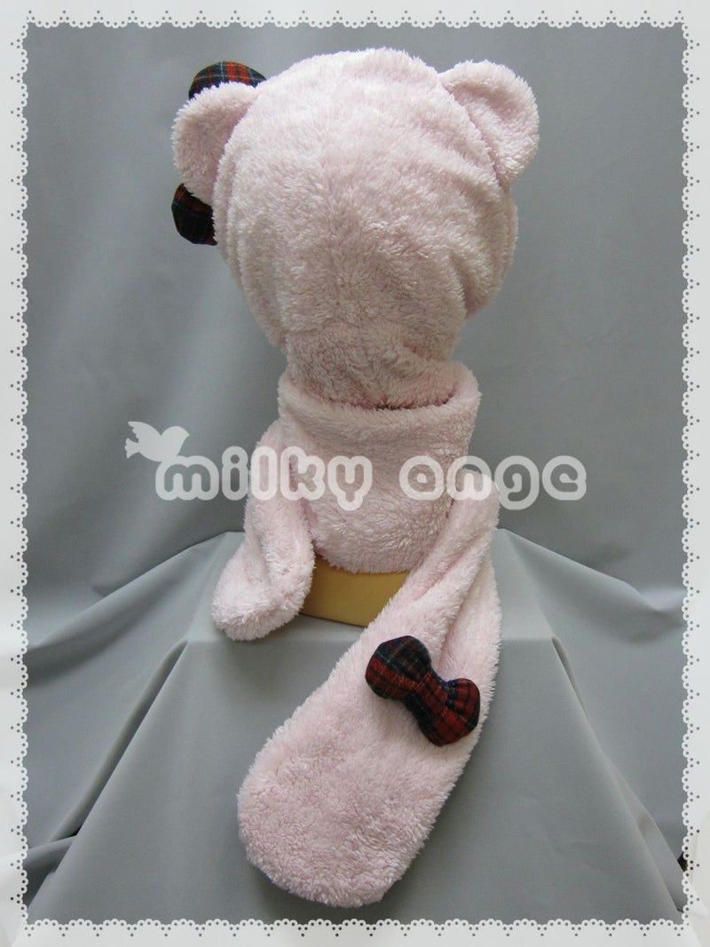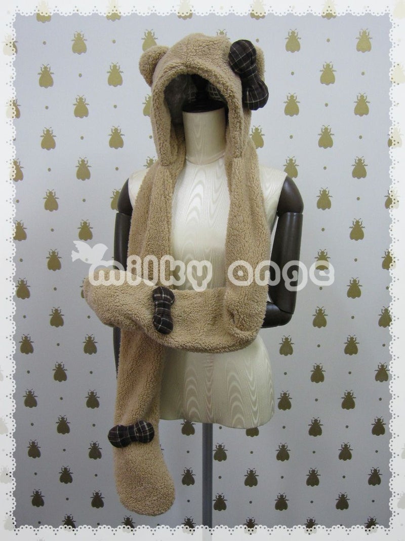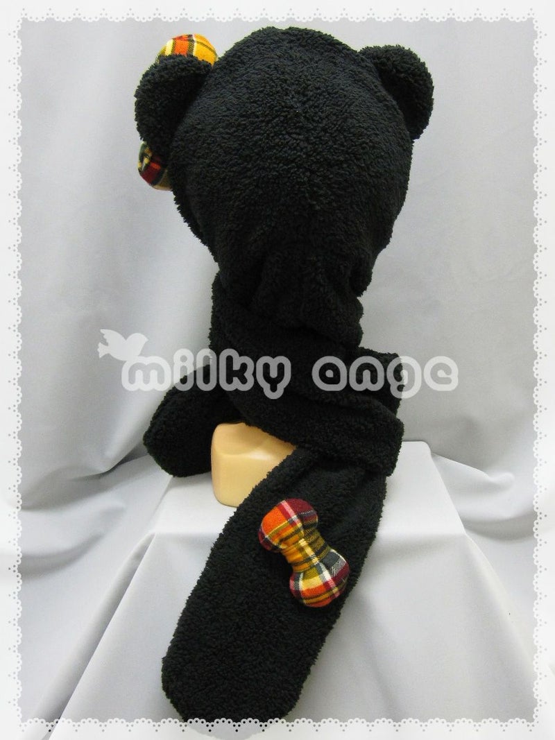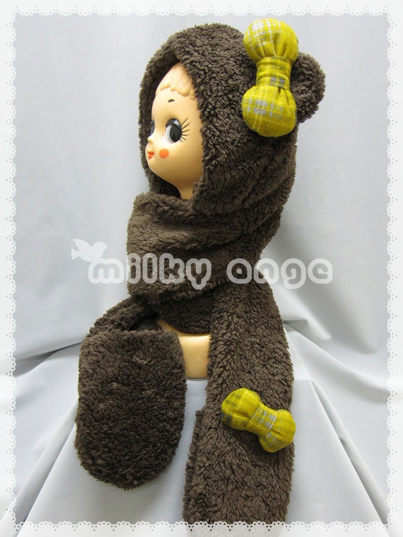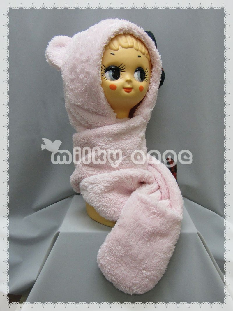 寒い季節にぴったりの、あたたかい・可愛い・軽いの三拍子そろった、くまみみが付いたフードが特徴のフーディマフラーです。