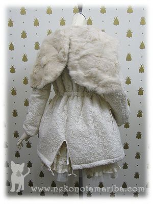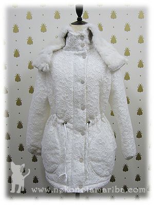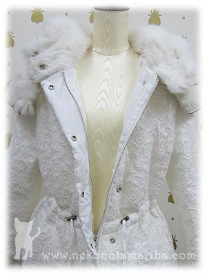フード部分中央のジッパーを開くと、フード内側のラビットファーがレースのもつ優しい雰囲気とマッチして、可愛らしさを引き立たせてくれますよ。